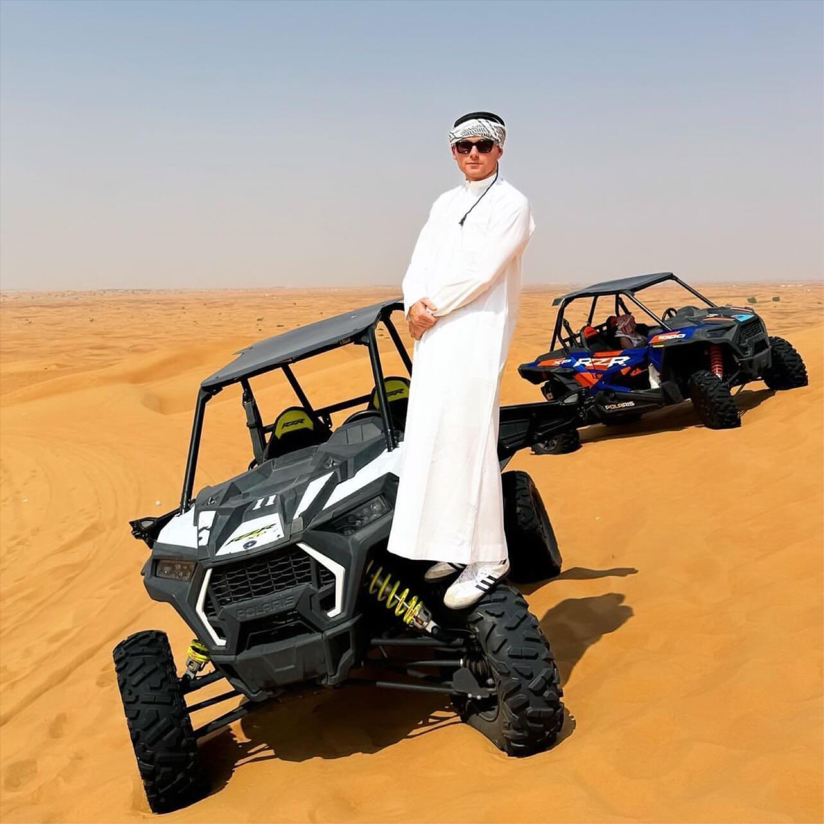 The Polaris RZR 1000cc dune buggy is a popular choice for adventurous off-road enthusiasts in Dubai, known for its rugged design and powerful performance capabilities. Equipped with robust suspension systems and high-torque engines, the Polaris RZR handles the demanding desert terrain of Dubai with ease, offering thrill-seekers an exhilarating experience navigating through sand dunes and rough landscapes. Its agile handling and advanced safety features make it a preferred vehicle for desert excursions, providing both excitement and reliability for those exploring the vast desert landscapes of Dubai.
